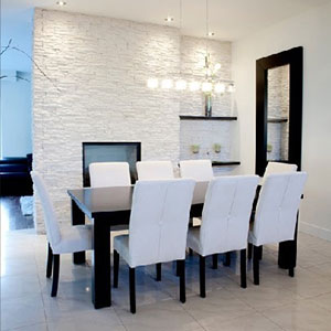 Kamenný obklad možno použít jako obložení stěny v obývacím pokoji, kuchyni, ložnici, koupelně, nebo jako obklad rohů místností, stěna například mezi kuchyní a obývákem, barový pult v jídelně, či jako obklad krbu, umístění kolem oken, a prostor kolem nebo pod schodištěm – s kamenným obkladem získají tyto prostory nový, elegantní a stylový vzhled.